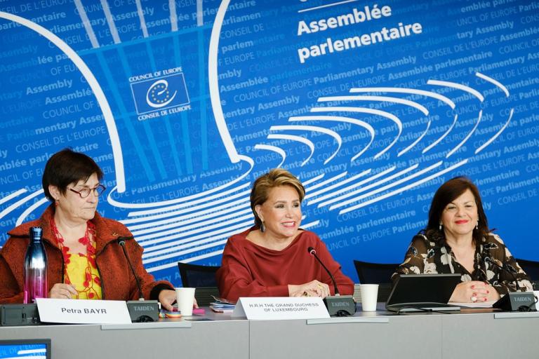 En 2025, S.A.R. la Grande-Duchesse Maria Teresa prend part à plusieurs colloques de haut niveau, notamment à l’Assemblée nationale française et au Conseil de l’Europe à Strasbourg, consacrés à la lutte contre le viol comme arme de guerre et au rôle des femmes dans la paix.