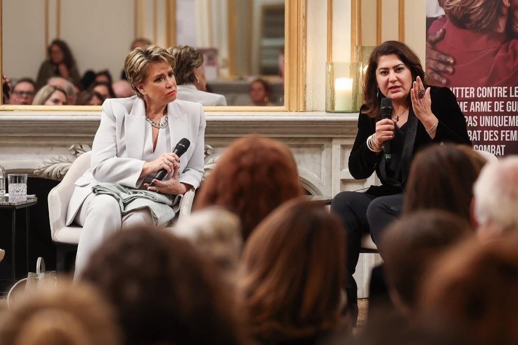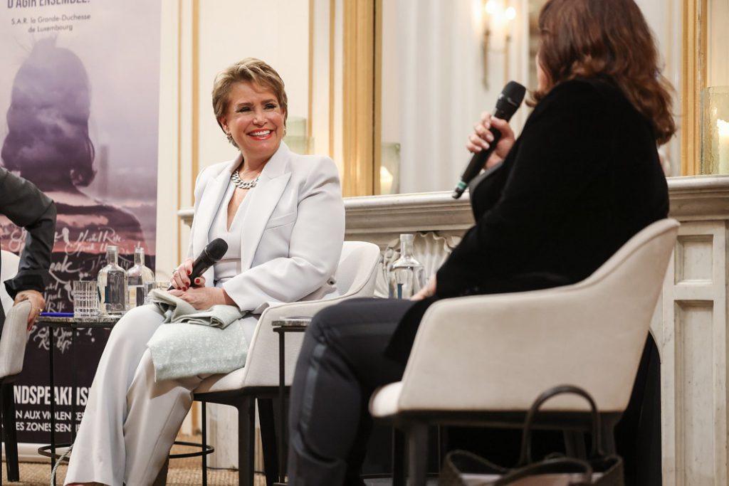 La Grande-Duchesse était l’une des trois intervenantes sur le sujet « Être une Femme, et victime» avec Madame Isabelle Thery, Vice-présidente du tribunal de grande instance de Melun et la médecin yézidie Dr Nagham Hasan. Dans son intervention, la Grande-Duchesse a soulevé les conséquences socio-économiques des viols dans les conflits armés et dans les zones sensibles. Elle a lancé l’appel de créer une alliance internationale autour des survivantes afin de leur obtenir reconnaissance et réparation.