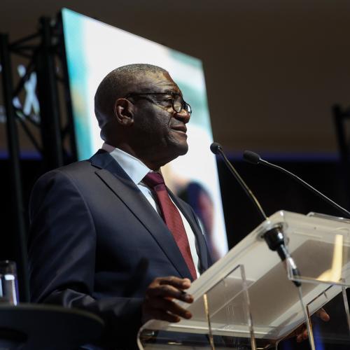 En présence de L.L.A.A.R. le Grand-Duc Henri et la Grande-Duchesse Maria Teresa de Luxembourg, engagés de longue date dans ce combat, et après l'introduction d'Yves Nosbusch, Président de la Fondation Alphonse Weicker, le Dr. Mukwege a pris la parole pour mettre des mots sur une réalité que beaucoup ignorent.