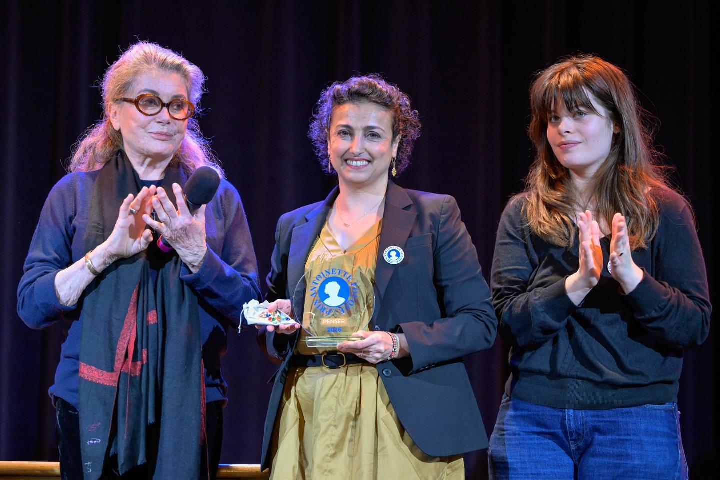 Prix « Penser » : Nabila Bouatia-Naji, chercheuse pionnière, pour ses travaux majeurs sur la santé cardiovasculaire des femmes. Le prix a été remis par Catherine Deneuve et sa petite fille Anna Biolay.